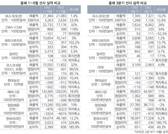 올해 3분기 글로벌 컨테이너선사들이 유가하락과 비용절감, 새로운 리스 회계기준인 IFRS 16 반영 등에 힘입어 일제히 실적개선을 이뤄냈다.