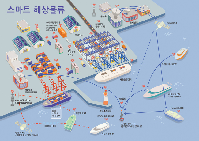 자율운항선박 개발과 연계해 이들 선박에 초고속 대용량 하역 서비스를 제공하는 자동화 항만 시스템도 구축된다. 스마트항만은 사물인터넷·인공지능 기술로 모든 작업과 물류 데이터를 실시간으로 분석해 최적의 물류 프로세스와 안전한 작업환경을 구현하게 된다.