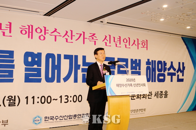 아랫사진)은 6일 서울 세종문화회관 세종홀에서 열린 해양수산가족 신년인사회에서 “지난 2019년은 해양수산업 혁신과 국민 삶의 질을 높이기 위해 정책 시스템을 재정비하고, 새로운 중장기 정책방향을 수립한 의미 있는 한 해였다”고 평가하고 “올해는 이들 정책이 직접 체감할 수 있는 가시적인 성과로 이어질 수 있도록 온 힘을 기울이겠다”고 다짐했다.