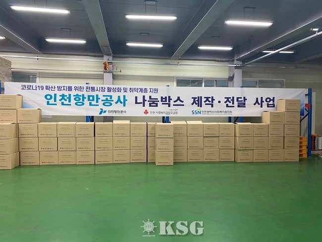 인천항만공사(IPA)가 최근 코로나19 여파로 침체된 전통시장의 상권을 활성화시키고 항만 인근 취약계층을 지원하고자 ‘나눔박스’를 제작·전달했다.