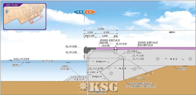 전장포항은 지난 1999년 건설 완료 후 해수면 상승으로 매년 3~4회 침수가 반복됨에 따라 어항부지 내 야적된 어구 등에 피해가 발생하고 있었다.