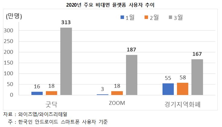 셋째, 비대면 서비스(Untact service)에 대한 의존도가 높아질 전망이다. ‘사회적 거리두기’가 보편화 됨에 따라 온라인쇼핑과 게임 서비스 수요가 급증했다. 과거 비대면 서비스는 젊은 층의 전유물로 여겨졌지만, ‘반강제적으로’ 소비자 전체로 확산했다. 온라인쇼핑이 급증하면서 지급결제서비스가 고도화되고, 온라인 교육 및 화상회의가 도입되면서 ZOOM과 같은 플랫폼 사용자가 급증했다. 공적 마스크의 실시간 재고를 확인할 수 있는 굿닥과 같은 플랫폼 사용자도 크게 늘었다. 플랫폼을 경험해 본 사용자들은 편리성과 유용성을 인식해 코로나19 사태 이후에도 지속적으로 사용하게 되는 것이다.