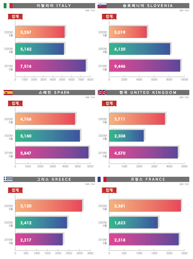 정기항로브리핑/ 구주항로 수출수송실적(2020년 5월/전월/전년)