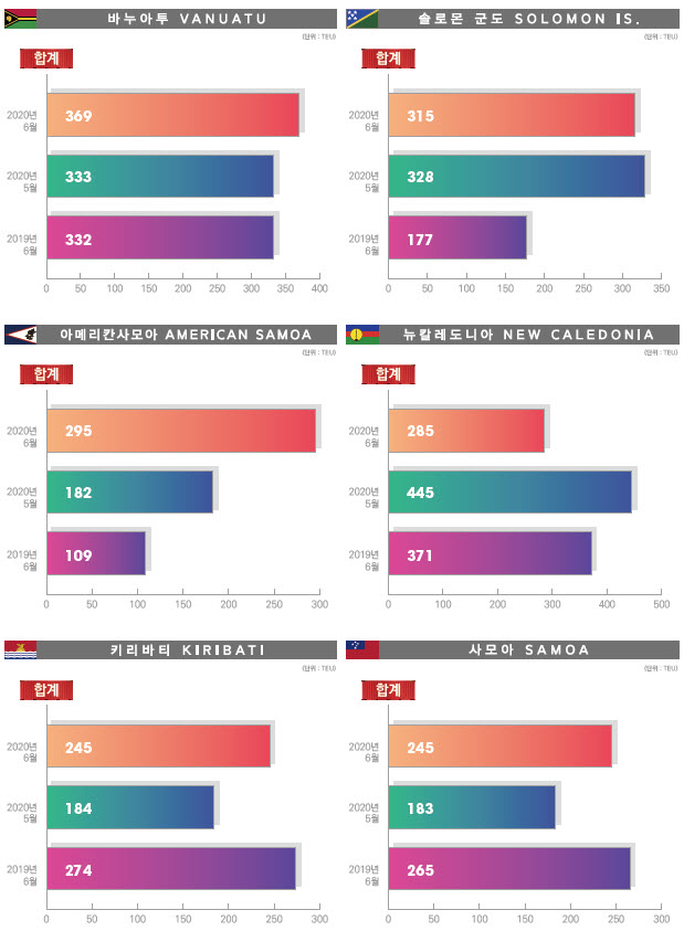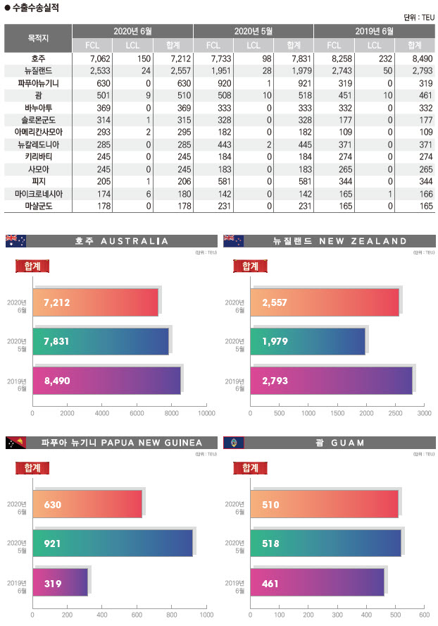 정기항로브리핑/ 호주항로 수출수송실적(2020년 6월/전월/전년)