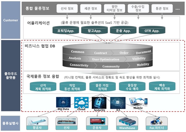 특히 현장에서 실시간으로 발생하는 국제물류 정보를 하나로 융합해 선적 계획과 작업 동선, 물류거점 선정, 물동량 수요 예측, 배송 계획에 최적화돼 있다. 엘비스프라임에서 빅데이터 클라우드 보안 인공지능(AI) 등을 통해 재가공된 정보는 항공사 선사 운송사 창고운영사 화주 등에게 실시간으로 전달된다.