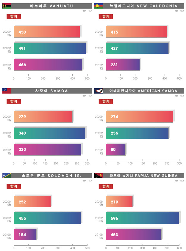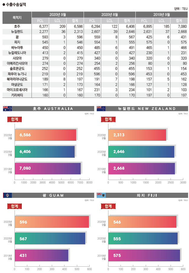 정기항로브리핑/ 호주항로 수출수송실적(2020년 9월/전월/전년)