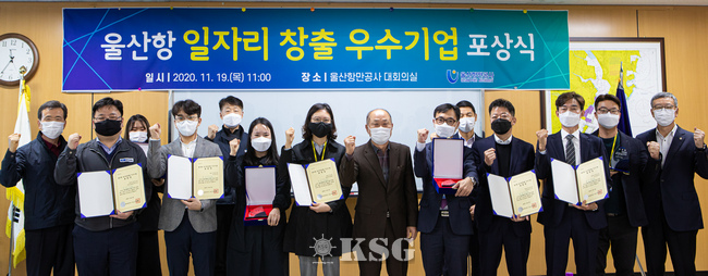 ‘울산항 일자리 창출 우수기업 포상’은 신종 코로나바이러스 감염증(코로나19) 사태로 경기 치체, 고용 불안정 등 어려운 경제 여건에도 일자리 창출에 기여한 우수기업을 격려하고 우수사례 전파를 통해 지역 내 일자리 창출을 장려하고자 마련됐다.