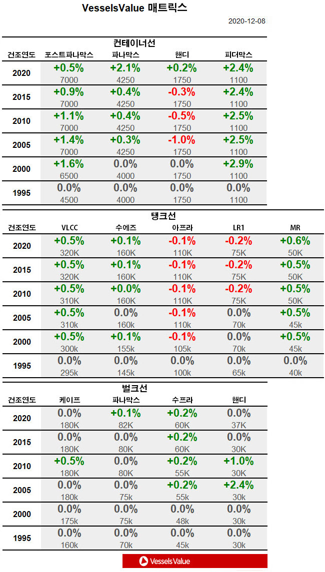 [표] 주간 중고선 가격동향