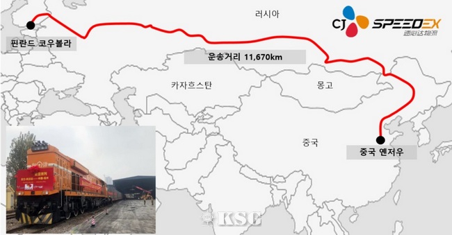CJ대한통운은 지난 15일 중국 자회사인 CJ스피덱스가 시베리아횡단철도(TSR)를 통해 핀란드-중국 간 화물직행열차(블록트레인)를 운행하는 데 성공했다고 밝혔다.