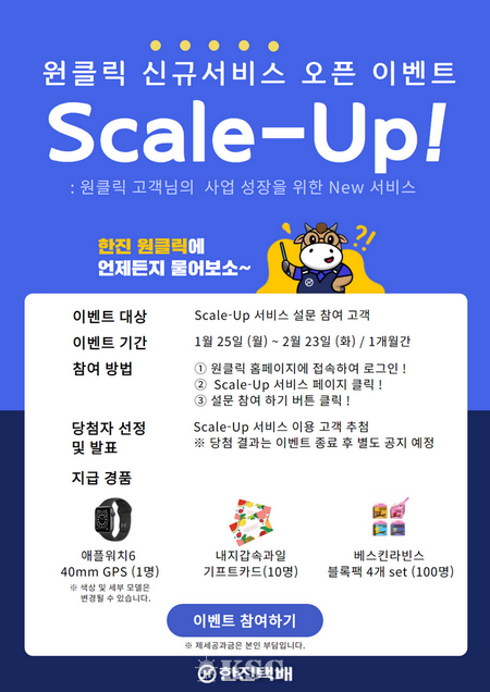 또한 론칭을 기념해 오는 2월23일까지 ‘스케일업 서비스’ 페이지에서 설문 참여 고객 대상으로 오픈 이벤트를 진행한다.
