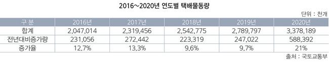 코로나19 여파에도 지난해 택배 물량은 30억상자를 넘어서며 호황을 이어갔다.