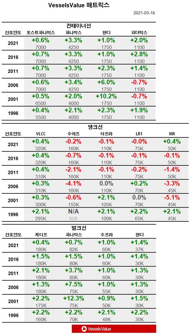 [표] 주간 중고선 가격동향