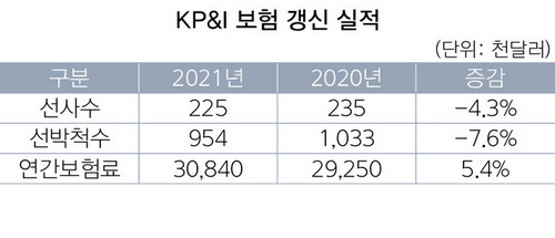 그 결과 베트남 16척, 인도네시아 21척, 중국 2척 등 39척 85만달러의 해외선박이 재계약하지 못한 것으로 집계됐다. 선원담보는 160척 164만달러로, 지난해의 185척 191만달러에서 14% 감소했다. 3개사 25척이 갱신을 안 하면서 보험료 27만달러가 줄었다.
