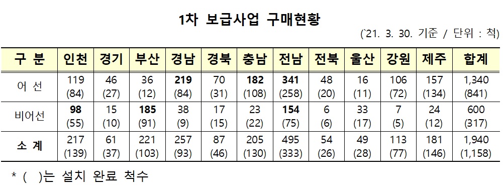 한편, 3차 보급사업부터는 보조금 지원방식이 정액지원(180만원)에서 정률지원(구매비용의 50%, 154만원 한도)으로 변경됨에 따라 보조금 규모가 낮아질 예정이다. 따라서 단말기 설치를 희망하는 어업인들은 2차 보급사업 기간에 구매하는 것이 유리할 수 있다.