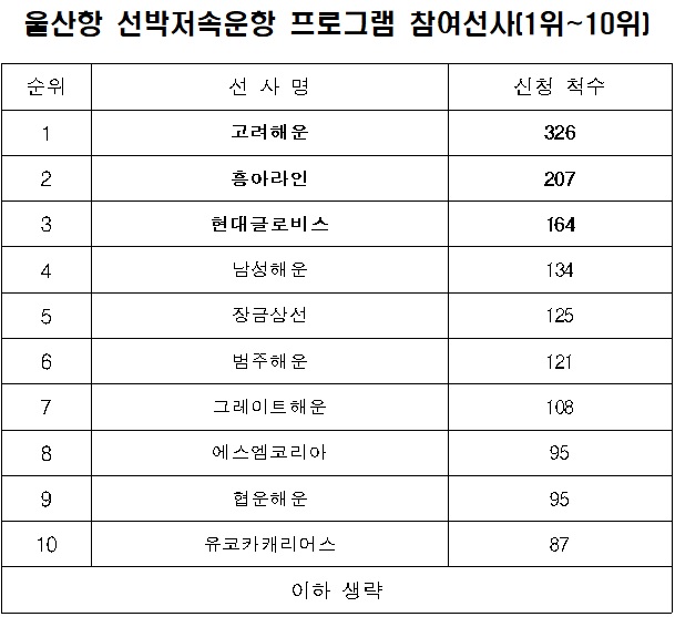 고려해운과 흥아라인이 울산항만공사(UPA)가 운영하는 선박 저속운항 프로그램에서 우수선사로 꼽혔다.