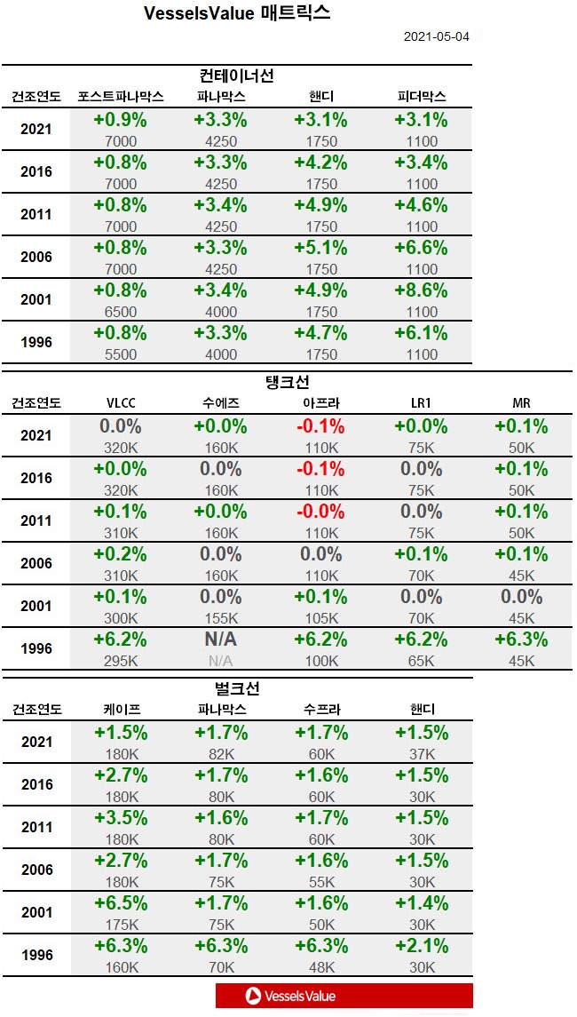 [표] 주간 중고선 가격동향