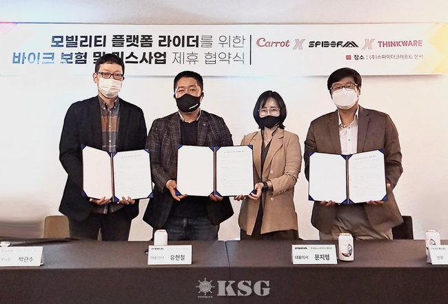 ▲왼쪽부터 캐롯손해보험 박관수 부문장, 스파이더크래프트 유현철, 문지영 대표, 팅크웨어 이준표 전무