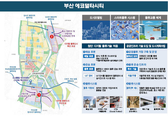 미래형 물류시스템 구축을 계획중인 부산 에코델타시티는 시민에게 보다 편리한 생활물류 서비스 제공을 위해 친환경·공동 배송, 테스트베드 조성, 디지털 물류플랫폼 구축 등 미래형 물류시스템 구현방안 등을 마련할 예정이다.