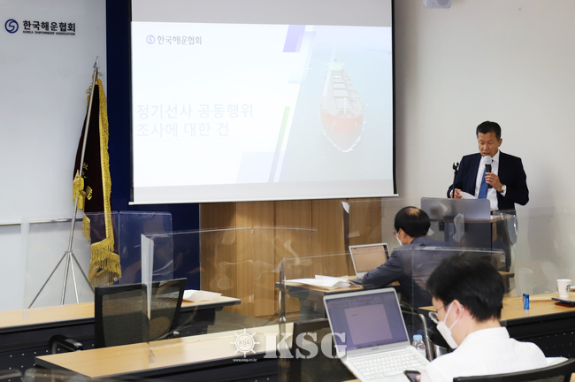 한국해운협회 김영무 상근부회장은 8일 오후 서울 여의도 해운빌딩에서 연 기자간담회에서 “2년 전 공정위는 가격담합에 대한 공정거래법 적용을 제외하는 대표 사례로 해운기업의 운임 공동 결정행위를 들었다”고 공개했다.