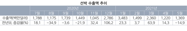 산업부 관계자는 “수출 품목에서 유일하게 감소세를 보인 선박은 대부분 2∼3년 전 수주한 것으로 올해 수출 흐름과는 관련이 적다”고 설명했다.