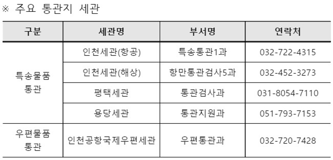 등록은 특송 및 우편화물을 취급하는 주요 세관 중 등록시점을 기준으로 직전 1년 동안 구매대행물품을 주로 통관한 세관에 신청하면 된다. 세관별 부서는 다음과 같다.