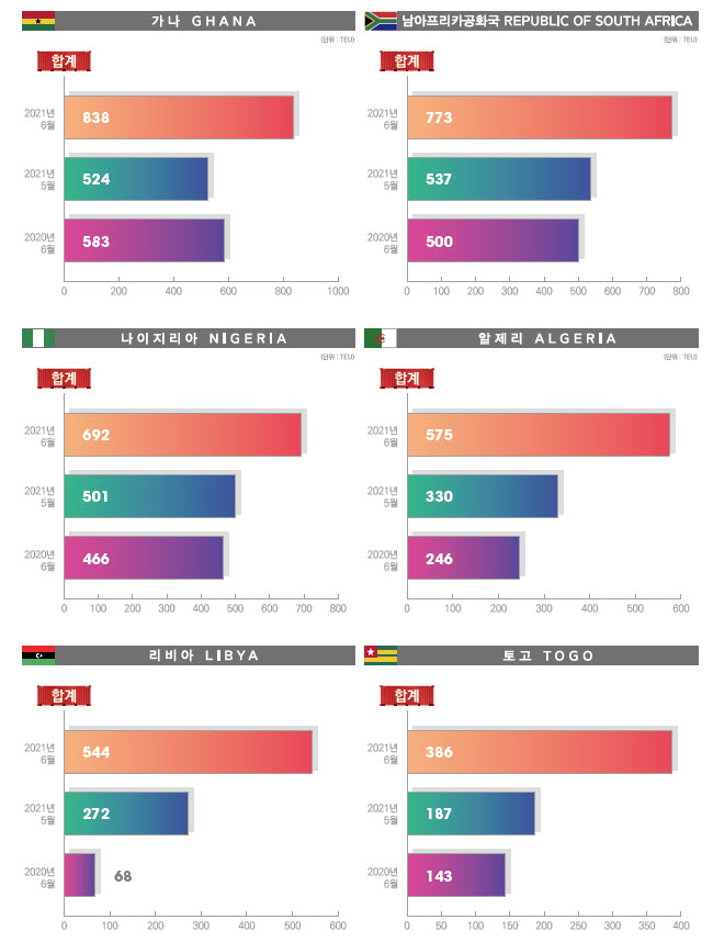 정기항로브리핑/ 아프리카항로 컨테이너 수출수송실적(2021년 6월)