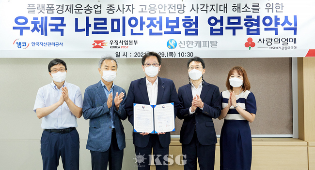 캠코는 지난 29일 강남구 도곡동 소재 캠코양재타워에서 캠코 채무자 중 플랫폼 운송업 종사자에 대한 교통상해보험 무료가입지원을 위해 서울지방우정청 등과 영상으로 업무협약을 체결했다고 밝혔다.