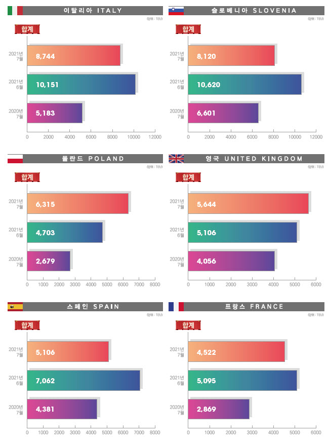 정기항로브리핑/ 구주항로 컨테이너 수출수송실적(2021년 7월)