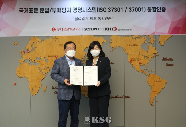 롯데글로벌로지스가 국내 물류업계 최초로 준법과 부패방지 경영시스템의 국제표준인 ISO37301·37001 인증을 동시 획득했다.