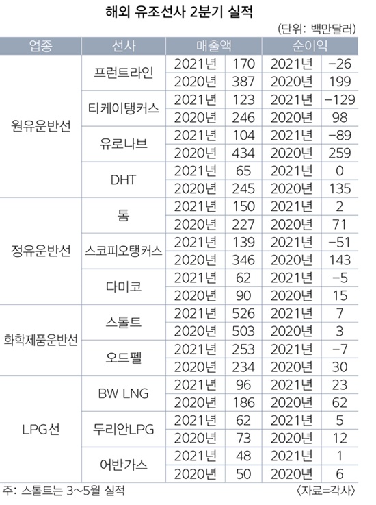 해외 유조선사들이 시황 침체로 2분기에 모두 적자를 냈다.