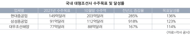 컨테이너선 수주 랠리를 이어나간 우리나라 대형조선사들이 올해 수주목표를 초과 달성했다.