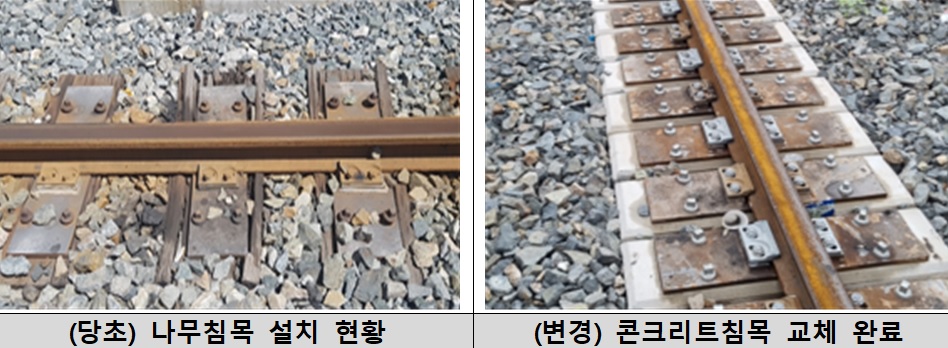 신항 제1부두 RMGC의 레일 기초는 애초 나무침목으로 설치됐으나 이번에 콘크리트 침목으로 전부 교체했다.