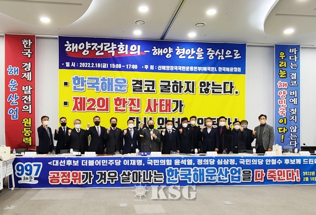 또 해운사들의 공동행위를 공정거래법 적용 대상에서 제외하는 내용의 해운법 개정안이 국회 본회를 신속히 통과할 수 있도록 힘을 모으고 20대 신임대통령에게 국민청원서를 제출한다는 방침도 정했다.