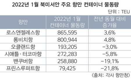 로스앤젤레스(LA)항과 롱비치항의 선전에도 북미서안 7개 항만의 1월 컨테이너 물동량은 마이너스 성장을 나타냈다.