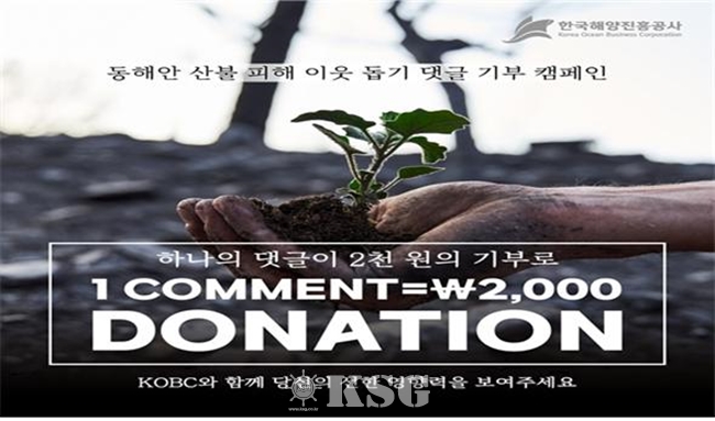 김양수 한국해양진흥공사 사장은“최근 유례없이 이어진 장기간의 산불로 강원·경북지역에 큰 피해가 발생해 안타깝게 생각하며, 하루빨리 산불피해가 복구돼 피해지역 주민들께서 일상으로 돌아가기를 희망한다”고 밝혔다.