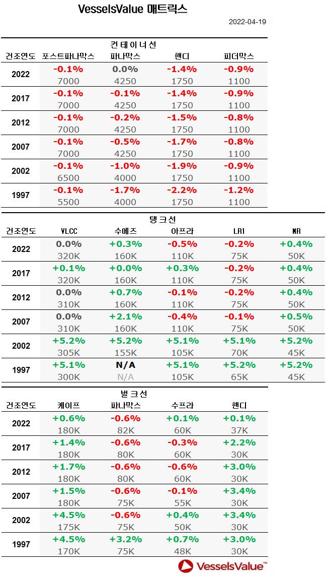 [표] 주간 중고선 가격동향