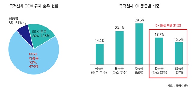 하지만 아직 국적선사들의 탄소배출 접근은 더딘 실정이다. 해양수산부에 따르면 EEXI의 경우 국적선 649척 중 규제를 충족하지 못하는 선박이 72.4%인 470척에 달한다.