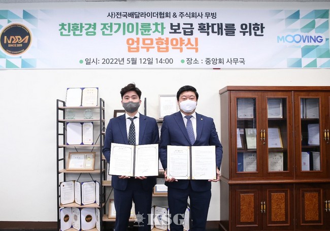 친환경 모빌리티 공유 플랫폼 스타트업 ‘무빙’은 전국이륜차배달라이더협회와 친환경 전기 이륜차 보급 확대를 위한 업무 협약을 체결했다고 16일 밝혔다.