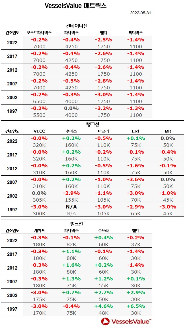 [표] 주간 중고선 가격동향