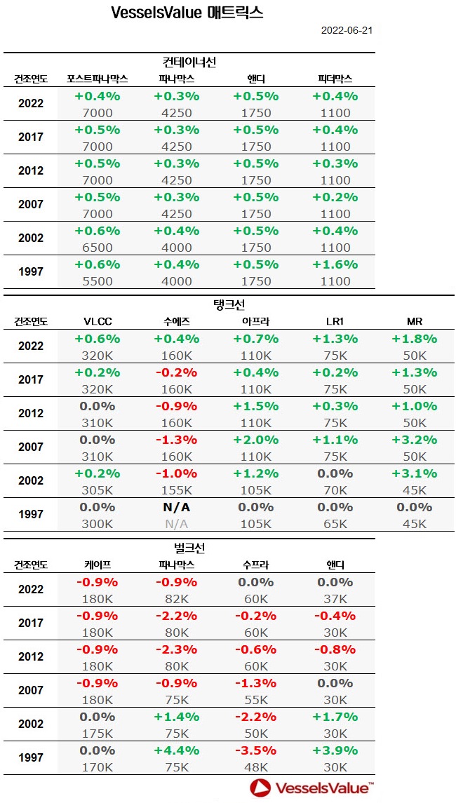[표] 주간 중고선 가격동향