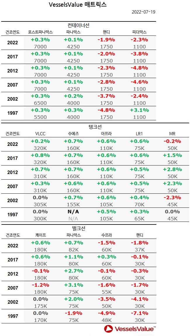 [표] 주간 중고선 가격동향
