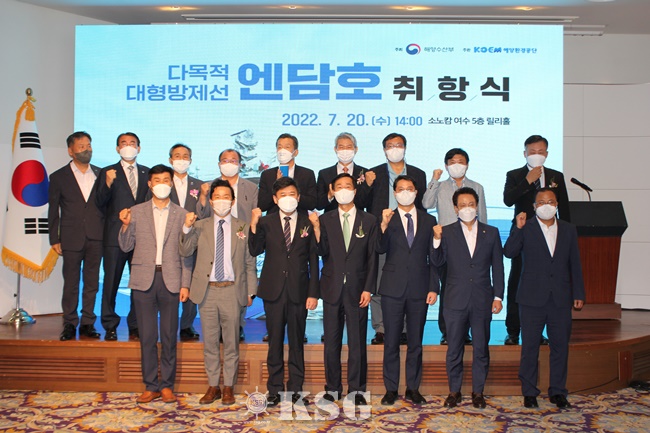 해양환경공단은 다목적 대형방제선 <엔담>호 취항식을 지난 20일 여수신항 해경부두에서 개최했다. 이날 취항식에는 한기준 해양환경공단 이사장, 김준석 해양수산부 수산정책실장, 최정기 전남도 해양수산국장, 김영무 해운협회 부회장, 박상준 STX마린서비스 대표, 조용화 도선사협회장 등이 참석했다.