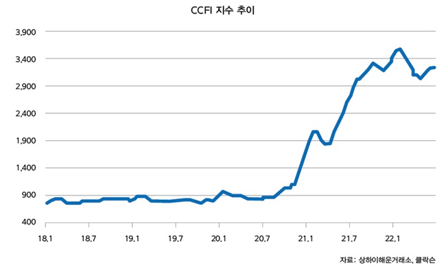 컨테이너 운임은 올 상반기 매우 높은 수준을 유지했다. 컨테이너 시황은 중국 상하이 봉쇄, 인플레이션과 금리 인상 영향으로 인한 소비 위축 등의 악재로 상반기 운임이 하락했지만 2020년 하반기부터 나타난 항만물류 정체가 아직 해소되지 않아 여전히 매우 높은 수준이 유지되고 있다.