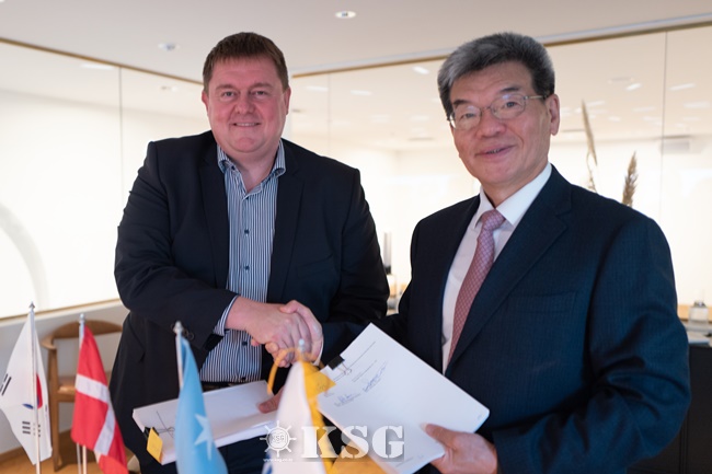 | ▲사진 왼쪽부터 머스크 팔리 로슨 기술총책임자(CTO), 한국조선해양 가삼현 대표이사 |