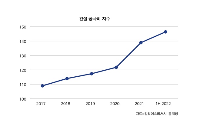 통계청이 발표한 건설 공사비 지수에 따르면, 2015년을 100으로 기준하면 2022년 5월 기준 146.38로 약 46% 상승했다. 시멘트와 철근의 평균 t당 가격은 전년 대비 각각 47% 73% 뛰었다.