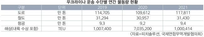 우크라이나에서 가장 높은 비중을 차지하는 육상운송이 그나마 물류 적체로 대안이 될 가능성이 높아 보인다.