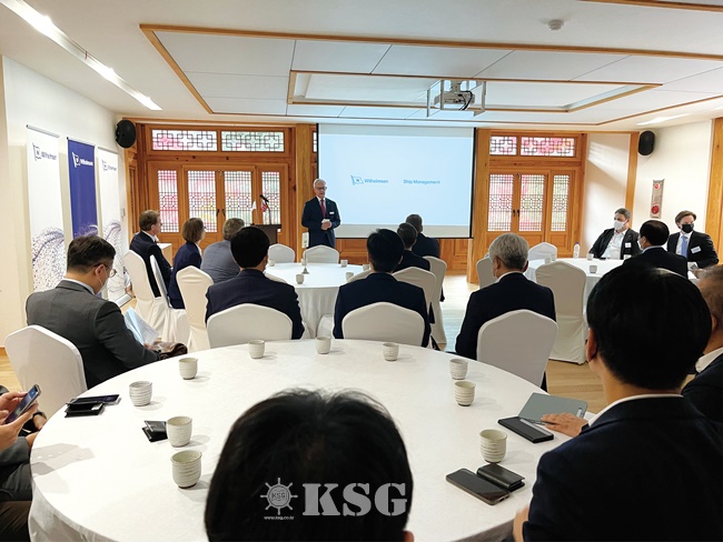 이 회사는 지난 10일 서울 성북구 삼청각에서 주한노르웨이 대사관과 공동으로 해운업계의 미래 탈탄소화 대응 방안과 전략을 주제로 세미나를 열었다. 윌헴슨쉽매니지먼트가 국내에서 세미나를 주최한 건 이번이 처음이다.