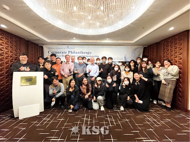 | ▲칼 슈 회장이 부산에서 진행된 아동 후원 기금 행사 후 기념 촬영을 하고 있다. |