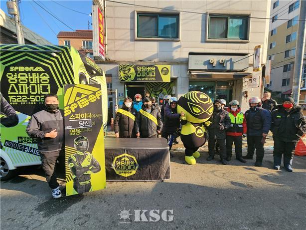 스파이더는 27일 서울 강동구 길동에서 라이더 100여 명의 타이어, 조향장치, 제동장치 등을 무상으로 점검했다. 캠페인에 참석한 라이더들에게는 배달용 방한복 등을 증정했다.