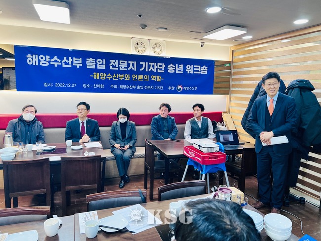 해양수산부 출입 전문지기자단은 27일 오후 송년 워크숍을 열고 쉬핑투데이 사영진 발행인과 현대해양 박종면 국장에게 올해의 기자상을 수여했다.